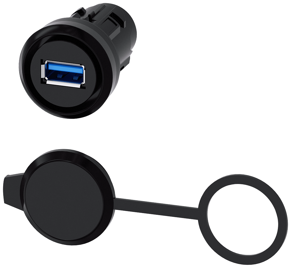 connessione USB tipo A 3.0, 22 mm, in plastica, nero Connessione USB tipo A come accessori per dispositivi di comando e segnalazione SIRIUS ACT. Siemens offre, sotto il nome commerciale SIRIUS ACT, un portfolio esclusivo di dispositivi di comando e segnalazione con omologazioni di prodotto per il mercato mondiale in tre moderne serie di design in robusto metallo puro e plastica pregiata.Linnovativo concetto di innesto a scatto semplifica talmente il montaggio che per eseguirlo basta una sola mano e non servono attrezzi speciali. Per i fori di montaggio sono sufficienti semplici fori non scanalati, essendo già integrata una protezione antirotazione al 100 %.Grazie al grado di protezione elevato i robusti apparecchi sono adatti allimpiego industriale e in ambiente esterno. È persino possibile la pulizia con getto ad alta pressione. Né polvere, né oli, né liscivia possono comprometterne il funzionamento affidabile.Oltre che con il cablaggio standard, gli apparecchi possono essere collegati al controllore anche tramite PROFINET, AS-Interface oppure IO-Link. Potete così ridurre il vostro onere di cablaggio, minimizzare le fonti di errore e ottenere maggiore flessibilità.Il configuratore online grafico supporta in modo confortevole la scelta e lordinazione di singoli apparecchi, pulsantiere e iscrizioni. È disponibile una documentazione completa (ad es. manuale, dati 3D, schema di collegamento). Ampia gamma di accessori opzionali (ad es. targhette identificative, per protezione e accesso, operatori, accessori per pulsantiere). SIRIUS ACT - Performance in Action nel comando e nella segnalazione. Semplici da montare, altamente performanti, semplicemente perfetti.