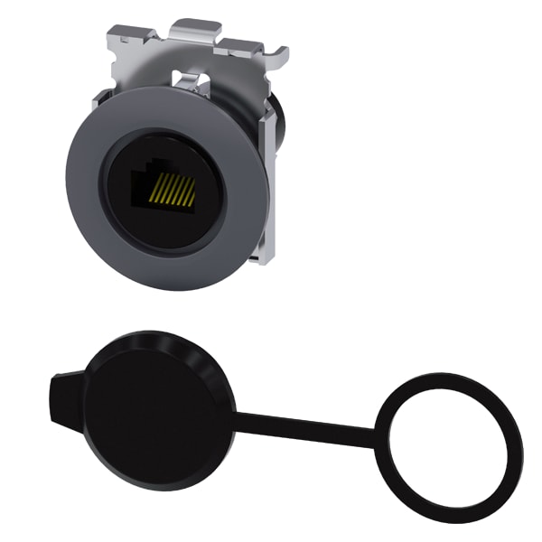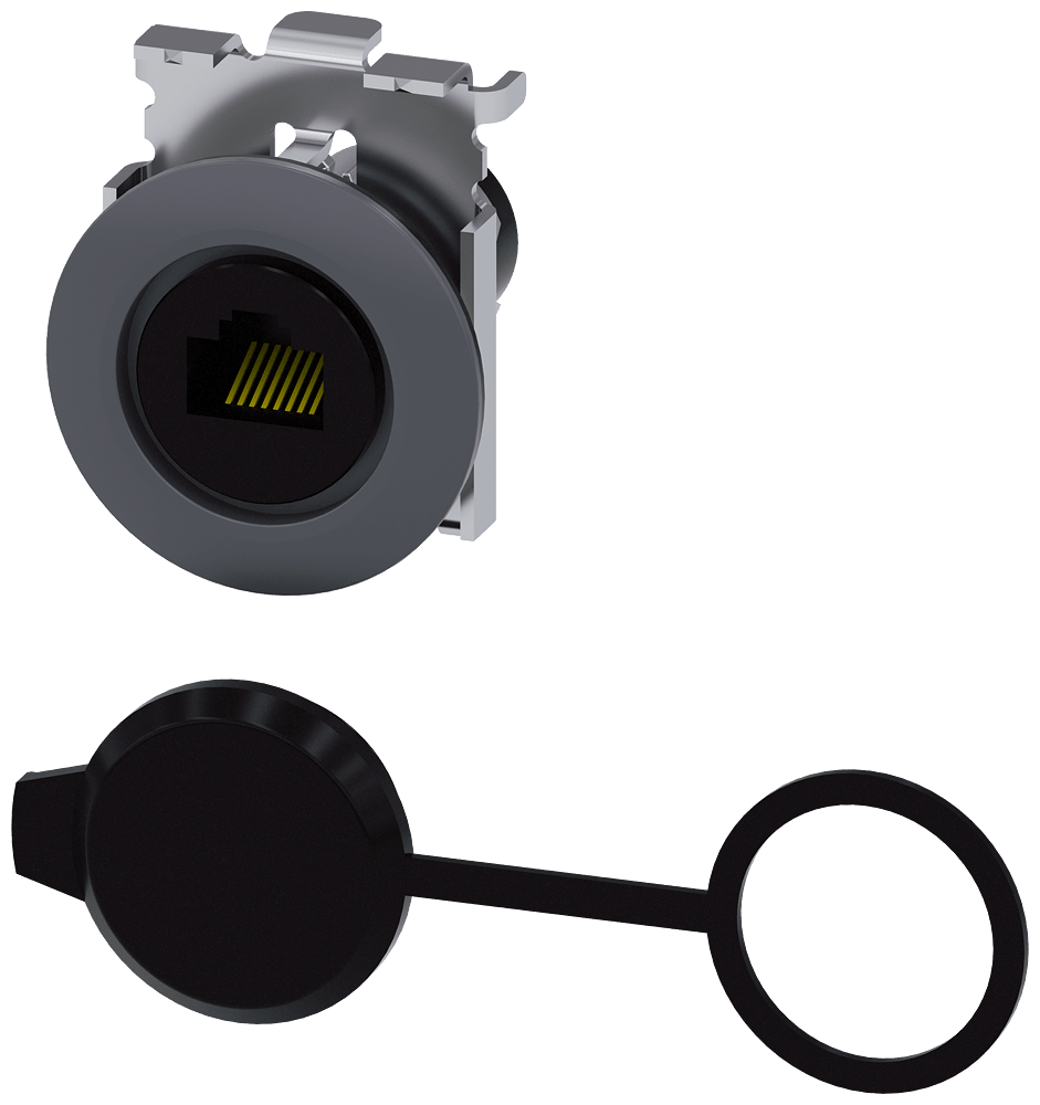 Collegamento RJ45, 30 mm, metallo opaco, grigio sabbia Connessione RJ45 come accessori per dispositivi di comando e segnalazione SIRIUS ACT. Siemens offre, sotto il nome commerciale SIRIUS ACT, un portfolio esclusivo di dispositivi di comando e segnalazione con omologazioni di prodotto per il mercato mondiale in tre moderne serie di design in robusto metallo puro e plastica pregiata.Linnovativo concetto di innesto a scatto semplifica talmente il montaggio che per eseguirlo basta una sola mano e non servono attrezzi speciali. Per i fori di montaggio sono sufficienti semplici fori non scanalati, essendo già integrata una protezione antirotazione al 100 %.Grazie al grado di protezione elevato i robusti apparecchi sono adatti allimpiego industriale e in ambiente esterno. È persino possibile la pulizia con getto ad alta pressione. Né polvere, né oli, né liscivia possono comprometterne il funzionamento affidabile.Oltre che con il cablaggio standard, gli apparecchi possono essere collegati al controllore anche tramite PROFINET, AS-Interface oppure IO-Link. Potete così ridurre il vostro onere di cablaggio, minimizzare le fonti di errore e ottenere maggiore flessibilità.Il configuratore online grafico supporta in modo confortevole la scelta e lordinazione di singoli apparecchi, pulsantiere e iscrizioni. È disponibile una documentazione completa (ad es. manuale, dati 3D, schema di collegamento). Ampia gamma di accessori opzionali (ad es. targhette identificative, per protezione e accesso, operatori, accessori per pulsantiere). SIRIUS ACT - Performance in Action nel comando e nella segnalazione. Semplici da montare, altamente performanti, semplicemente perfetti.