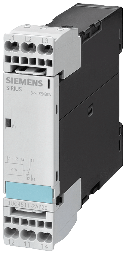 !!! prodotto di fine serie !!! Il successore consigliato è 3UG5511-2AR20 controllo sequenza delle fasi 3 x 320 ... 500 V, 1 CO; relè di controllo analogico controllo sequenza delle fasi 3 x 320 ... 500 V AC 50 ... 60 Hz 1 CO tecnica di collegamento a molla Relè di controllo rete SIRIUS 3UG4 per la sorveglianza di sequenza, mancanza e asimmetria delle fasi, ad es. in caso di impianti mobili come compressori climatizzatori, container frigoriferi, compressori da cantiere o gru. Impiego in tutto il mondo grazie a certificati internazionali. Diverse varianti consentono la scelta precisa del prodotto adatto al caso applicativo. Fabbisogno di spazio ridotto nel quadro elettrico grazie alla larghezza costruttiva stretta. Tutte le esecuzioni con morsetti di collegamento rimovibili. Gli apparecchi sono disponibili oltre che con morsetti a vite anche con morsetti a molla per un collegamento rapido, esente da manutenzione e resistente alle vibrazioni. Varianti con ampio campo di tensione senza tensione ausiliaria sono impiegabili in tutte le reti del mondo. I molteplici accessori, come ad es. targhette identificative degli apparecchi, piastrine di fissaggio e calotte di copertura, sono uniformi per tutti i relè. Relè SIRIUS - un programma per ogni evenienza.