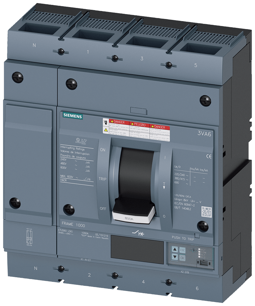 SIEMENS - SIE3VA65806JQ420AA0 MCCB UL FS800 800A 4P 65KA ETU5 LSIG - 3VA65806JQ420AA0