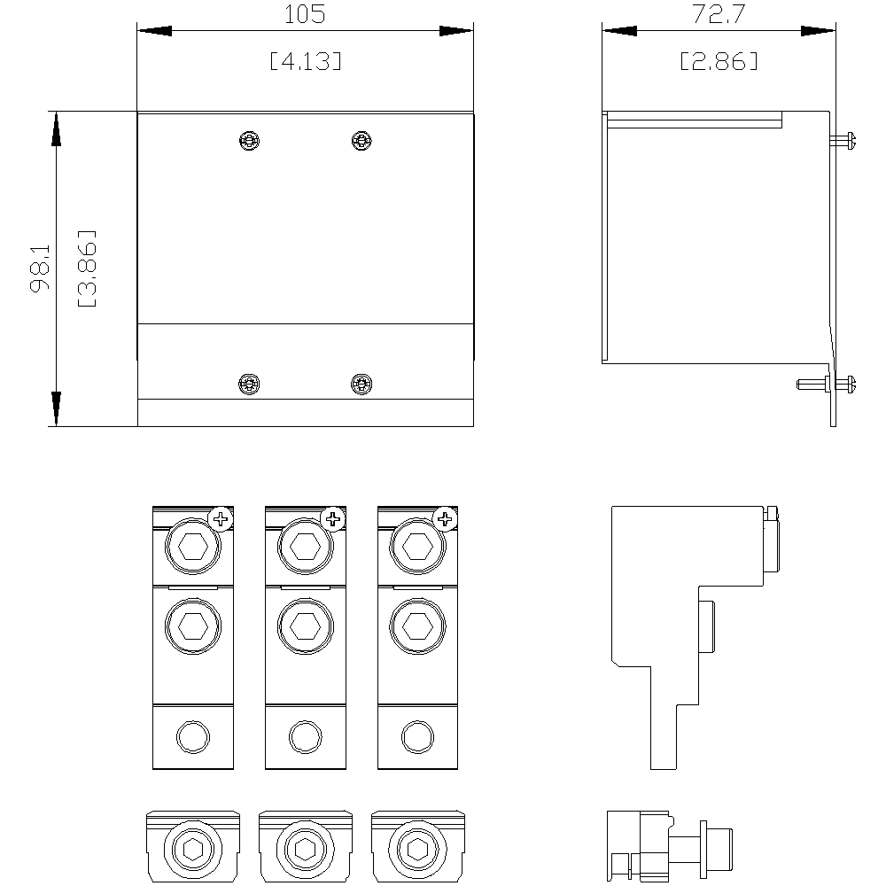 morsetto di collegamento per conduttore circolare TA2.3 2 x 4 AWG ... 300 kcmil per 2 cavi con presa di tensione per conduttore ausiliario 3 pezzi accessori per: 3VA61/62 Interruttori automatici scatolati SENTRON 3VA - un sistema. Per tutte le applicazioni.
