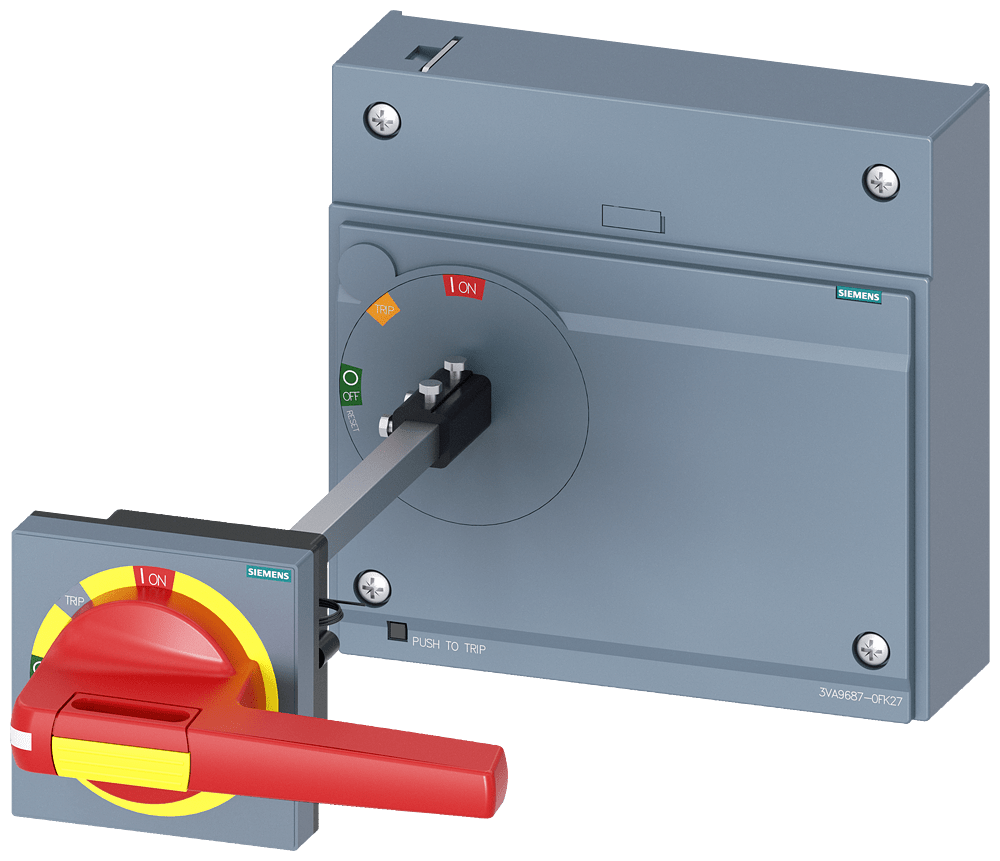 comando rinviato rotativo bloccoporta OFF di emergenza IEC IP65 con bloccoporta kit di illuminazione DC 24 V accessori per: 3VA15; 3VA25/26 Interruttori automatici scatolati SENTRON 3VA - un sistema. Per tutte le applicazioni.