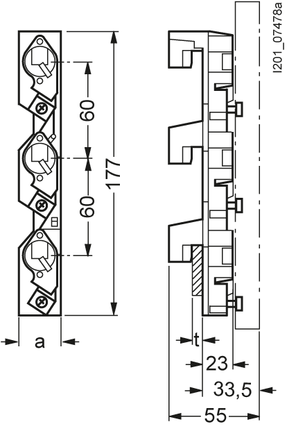NEOZED, base portafusibili, D02, a 3 poli, 63 A, Un AC: 400 V, Un DC: 250 V, per sistema di sbarre collettrici 8US 60mm senza copertura SENTRON 5SG6 . Dispositivi di protezione SENTRON - Una scelta sicura.