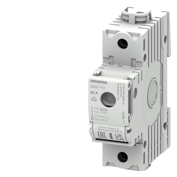 MINIZED, sezionatore sottocarico con fusibile, D02, a 1 polo, In: 63 , Un AC: 230 V senza inserto senza cartuccia fusibile SENTRON 5SG7 . Dispositivi di protezione SENTRON - Una scelta sicura.