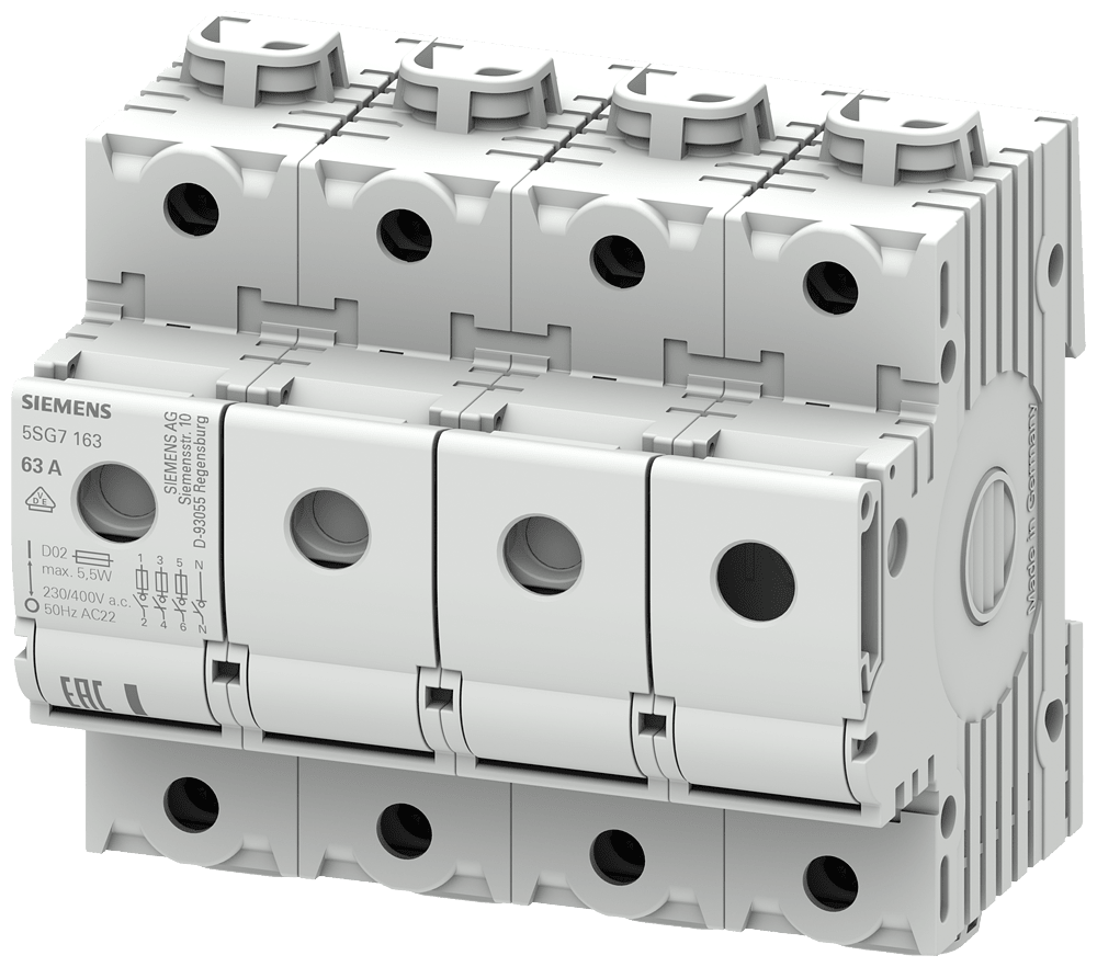 MINIZED, sezionatore sottocarico con fusibile, D02, 3P+N, In: 63 A, Un AC: 400 V senza inserto senza cartuccia fusibile SENTRON 5SG7 . Dispositivi di protezione SENTRON - Una scelta sicura.