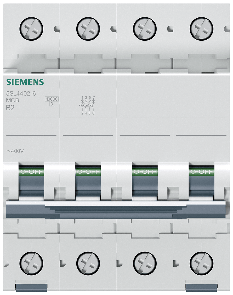 Interruttore magnetotermico 400V 10 kA, a 4 poli, B, 2 A Interruttore magnetotermico SENTRON per la protezione da cortocircuito e sovraccarico sicura per applicazioni standard in edifici residenziali e funzionali. Montaggio e smontaggio dellapparecchio senza attrezzi. Semplice cablaggio dellalimentazione mediante la sbarra collettrice posteriore. Gli interruttori magnetotermici 5SL sono disponibili in esecuzione a 1, 2, 3, 4 poli nonché a 1 polo +N e a 3 poli +N nonché in ulteriori tipi speciali. I numerosi accessori, come ad es. i blocchetti di contatti ausiliari, consentono una varietà di ampliamenti funzionali. Semplicemente sicuri con gli apparecchi di protezione di SENTRON.