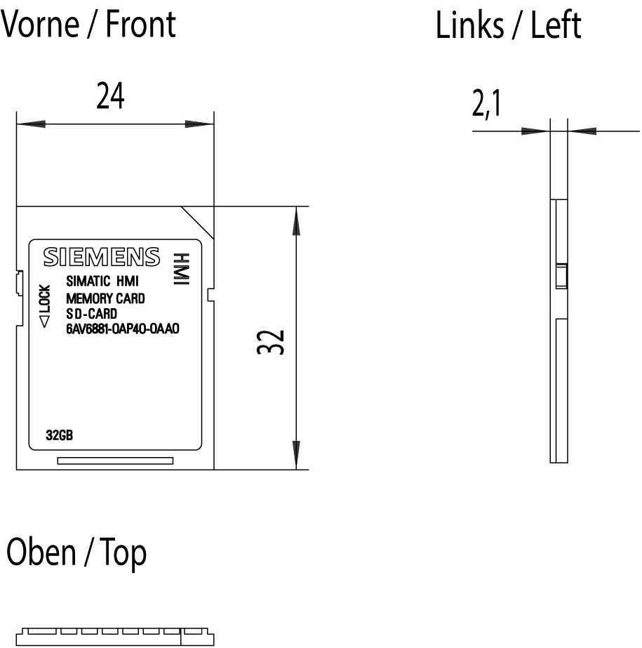 scheda SD indoor SIMATIC 32 GB, Secure Digital Card, per impiego indoor, utilizzabile con TIA V16 o superiore, dotazione di fornitura: 1 pz. scheda di memoria Accessori per SIMATIC HMI