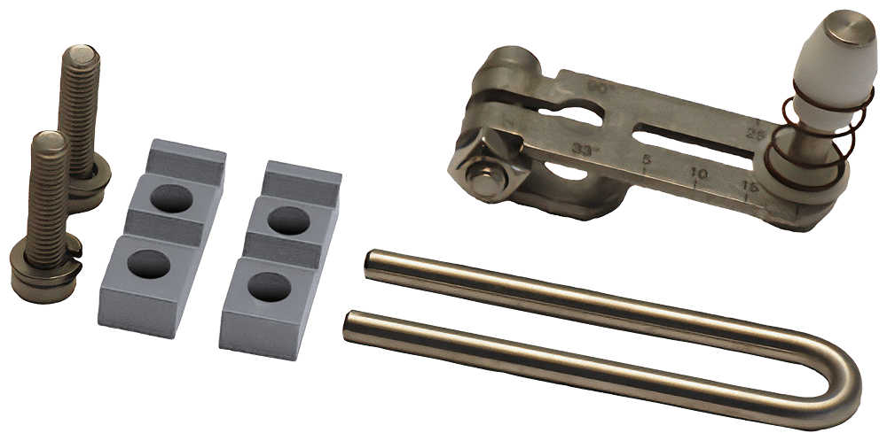 Kit di montaggio ridotto per elettropneumatico regolatore di posizione SIPART PS2, montaggio su attuatori lineari, comprendente leva corta, (giunto montato) nonché staffa di presa, elementi di serraggio (alluminio) e viti campi di corsa: 2 mm ... 35 mm; altre parti metalliche in acciaio al vanadio