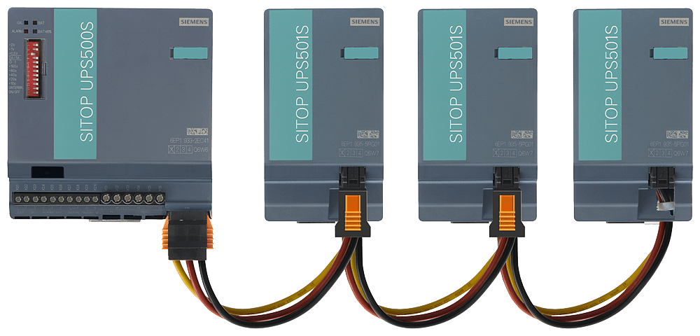 SITOP UPS500S esente da manutenzione alimentatore di continuità con interfaccia USB apparecchio base 2,5 kWs ingresso: DC 24 V uscita: DC 24 V/15 A grado di protezione IP20 Il modulo SITOP UPS500S con condensatori assolutamente esenti da manutenzione è lintegrazione ottimale per tutti gli alimentatori a 24 V. Essi superano cadute di rete di breve durata fino nellordine dei minuti. Questo intervallo normalmente è sufficiente ad es. per arrestare in sicurezza i sistemi di automazione basati su PC o per visualizzare e archiviare i dati di funzionamento nel caso di cadute di rete più lunghe. Linterfaccia USB e un tool software gratuito consentono una facile comunicazione con il PC. I condensatori hanno una durata molto lunga anche a temperature elevate e sono utilizzabili fino a una temperatura ambiente di 60 °C. Non cè necessità di manutenzione o di sostituzione dellaccumulatore di energia, per cui linvestimento nellalimentatore di continuità si ammortizza in breve tempo. E poiché i condensatori non emettono gas, si risparmia la ventilazione del quadro elettrico. Brevi tempi di ricarica assicurano il ripristino della capacità di tamponamento dopo una caduta di rete. Il modulo UPS500S per il montaggio su guida profilata può essere ampliato con moduli di ampliamento SITOP PSU501S (max. 3) per prolungare il tempo di tamponamento.