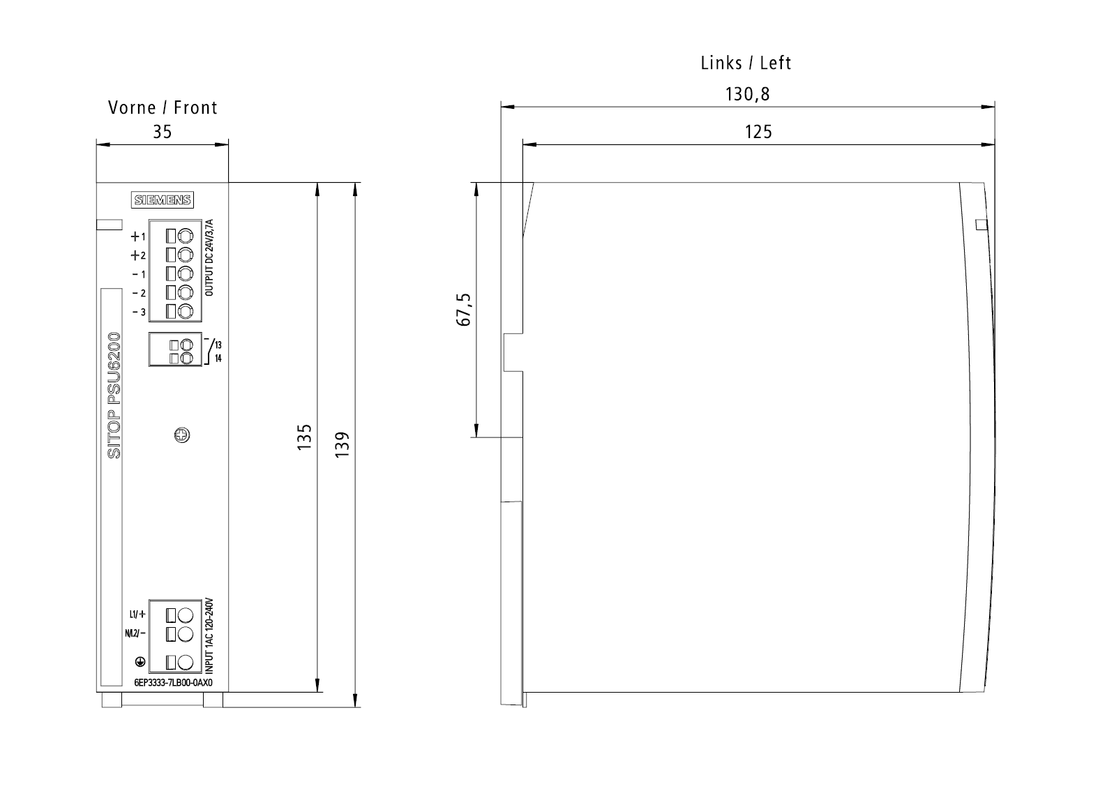 SIEMENS - SIE6EP33337LB000AX0 SITOP PSU6200 24 V3,7 A NEC CLASS II - 6EP33337LB000AX0