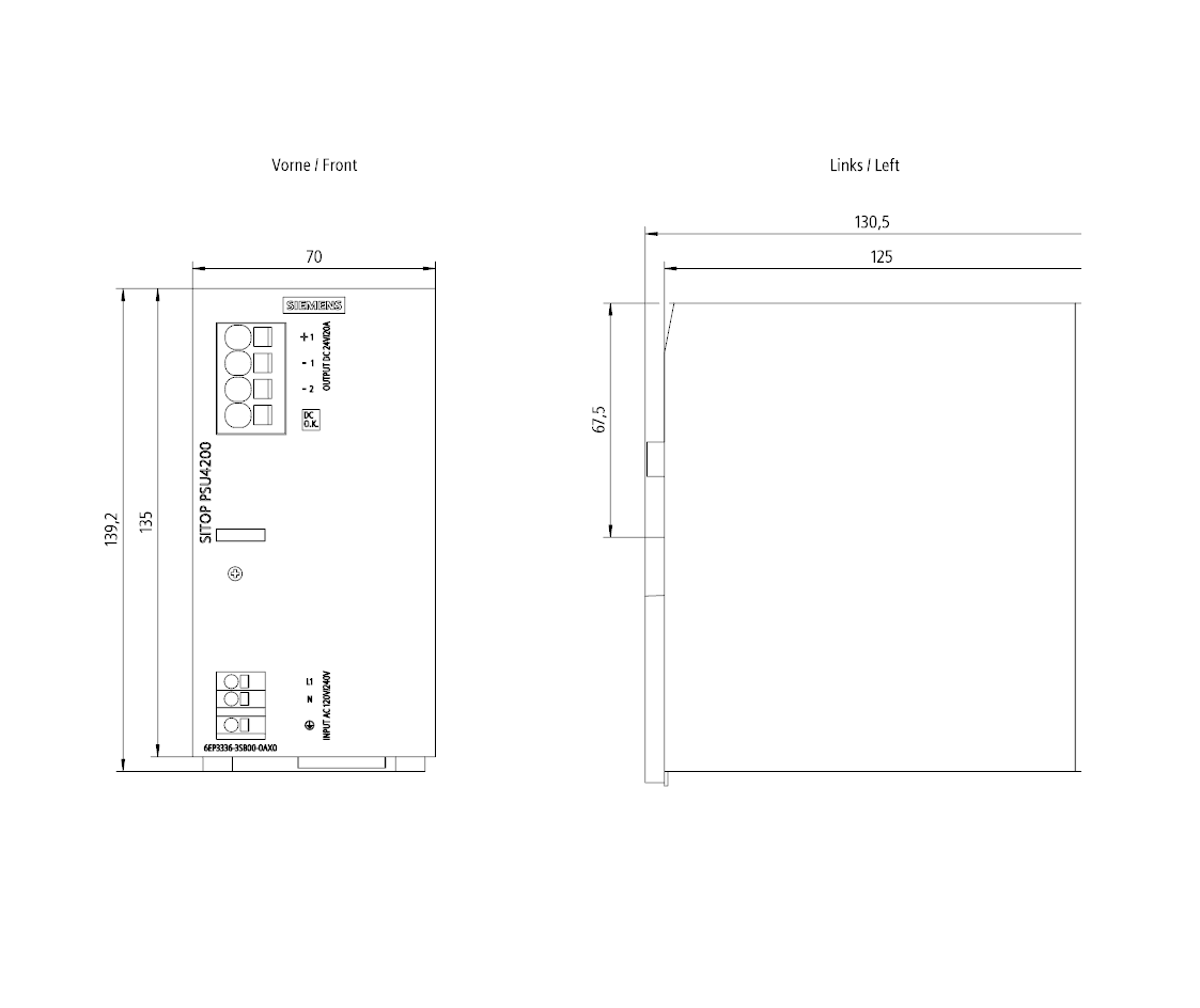 SITOP PSU4200 1AC 24 V/20 A alimentatore stabilizzato PSU4200 ingresso: AC 120/240 V uscita: DC 24 V/20 A Gli alimentatori monofase SITOP PSU4200 sono concepiti per le esigenze base nel campo industriale ed offrono tutte le funzioni più importanti ad un prezzo vantaggioso. Lingresso con commutazione automatica del campo di tensione consente il collegamento alle più diverse reti di alimentazione monofase. Grazie alla larghezza costruttiva ridotta, gli alimentatori da rete richiedono poco spazio sulla guida DIN e lottimo rendimento riduce lo sviluppo di calore dissipato nel quadro elettrico. Per un ulteriore aumento della disponibilità di 24 V, gli alimentatori da rete SITOP PSU4200 possono essere combinati con moduli buffer, di ridondanza e selettivi. Indipendentemente dal settore o dallesigenza, Siemens offre alimentatori affidabili ed efficienti per ogni impianto.