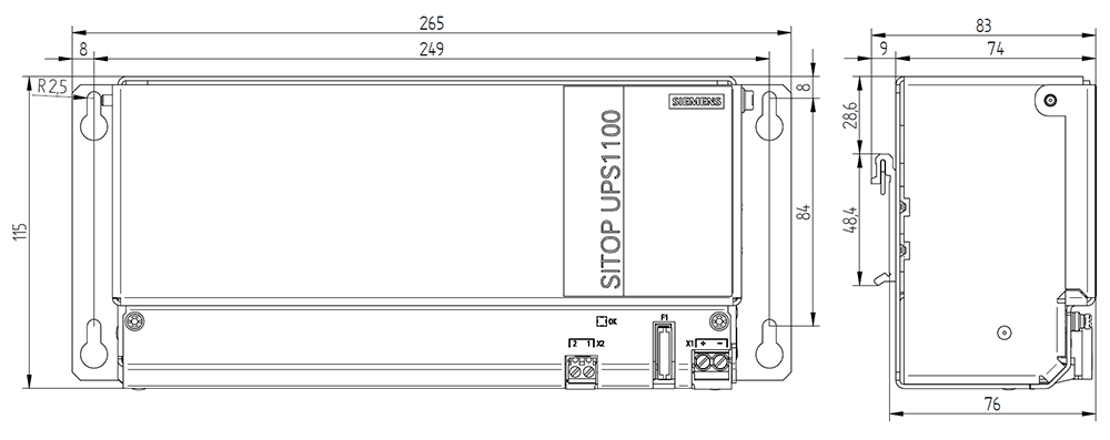SITOP UPS1100 modulo batteria con batterie al piombo sigillate batteria al piombo puro per moduli SITOP DC-UPS DC 24 V 2,5 Ah I moduli batteria esenti da manutenzione SITOP UPS1100 con batterie al piombo puro, più insensibili alle temperature, sono un importante componente dei sistemi DC-USV. In combinazione con un alimentatore a 24 V e un modulo UPS1600 consentono di bufferizzare cadute di rete anche dellordine di ore. La gestione intelligente delle batterie dellUPS1600 ricarica lUPS1100 con la caratteristica di carica ottimale a temperatura controllata e sorveglia lo stato via Energy Storage Link (dati di funzionamento e informazioni di diagnostica) dei moduli batteria collegati. Per ottenere tempi di bufferizzazione più lunghi è possibile collegare fino a sei moduli batteria paralleli. Il fissaggio si esegue su guida profilata standard o con il montaggio direttamente a parete.