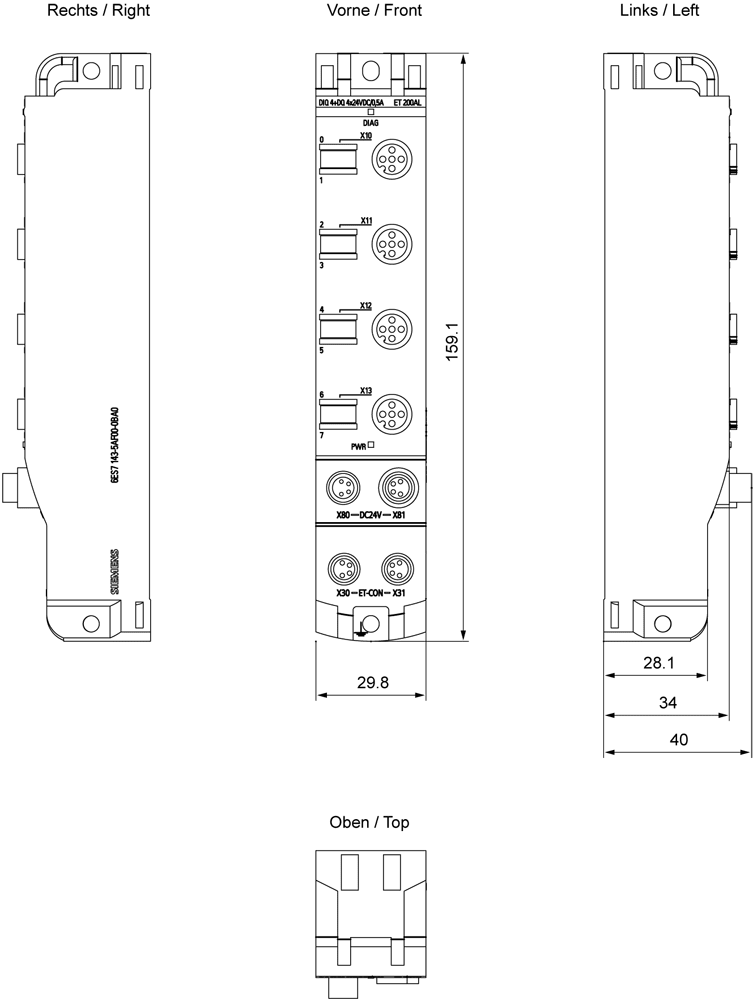 SIEMENS - SIE6ES71435AF000BA0 ET 200AL, DIQ 4+DQ 4X24VDC/0,5A, 4XM12 - 6ES71435AF000BA0