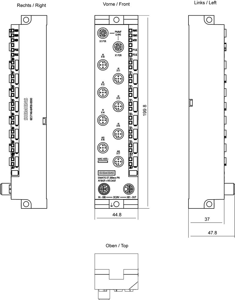 SIEMENS - SIE6ES71466HF000BB0 ET 200ECO PN, AI 6XU/I +AIQ 2XU/I, M12-L - 6ES71466HF000BB0