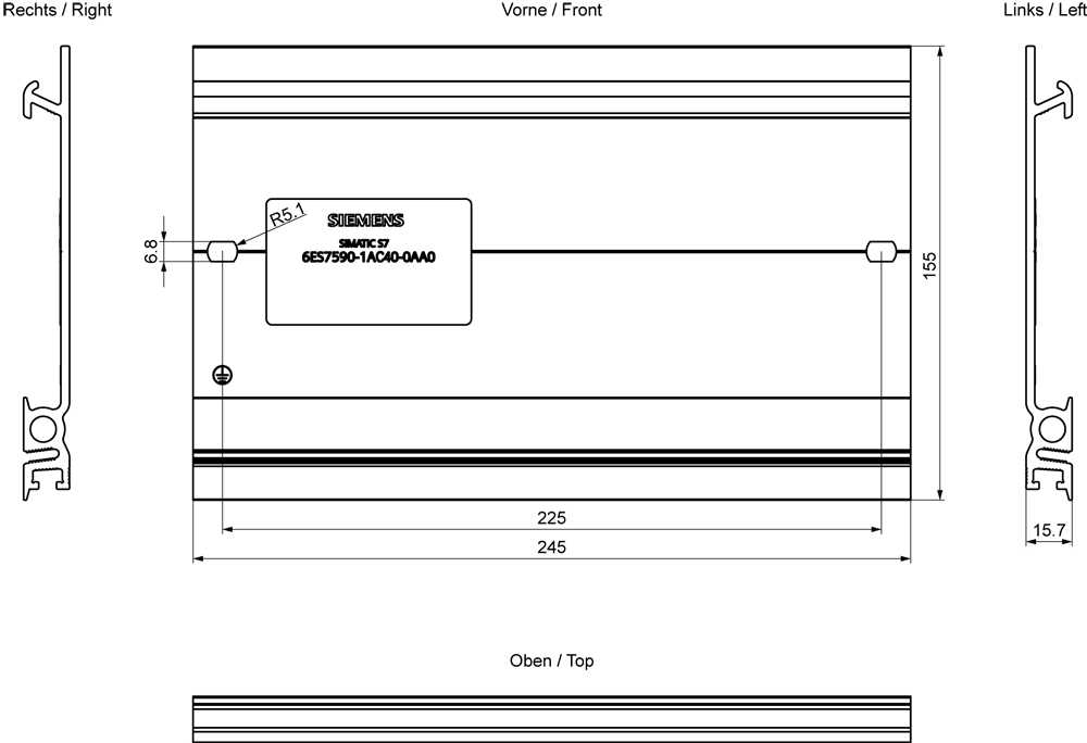 SIMATIC S7-1500, guida profilata 245 mm (ca. 9,6 pollici); incl. vite di messa a terra, guida profilata integrata per il montaggio della minuteria ad es. morsetti, interruttore automatico e relè Le guide profilate SIMATIC sono disponibili in diverse lunghezze per linstallazione diretta nel quadro elettrico o per il taglio alla lunghezza desiderata. Per il corretto collegamento di messa a terra vanno impiegati opportuni morsetti di messa a terra.