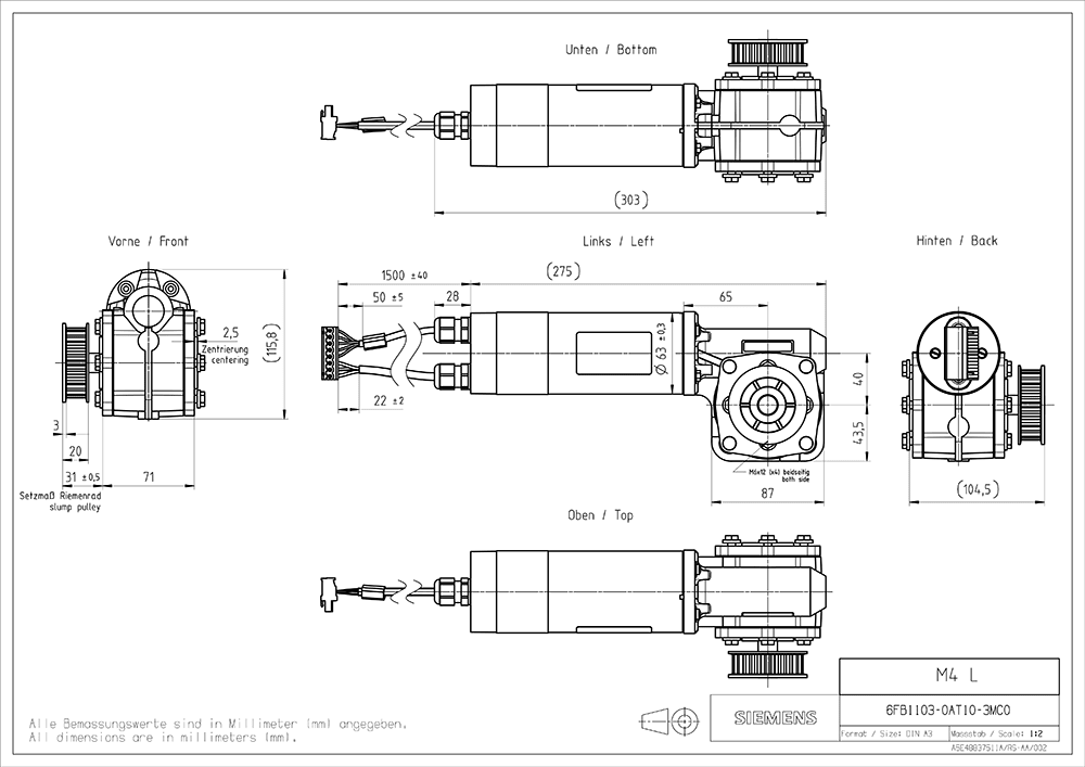 SIEMENS - SIE6FB11030AT103MC0 MOTORE AT40 (400 KG) ROTAZIONE SX - 6FB11030AT103MC0