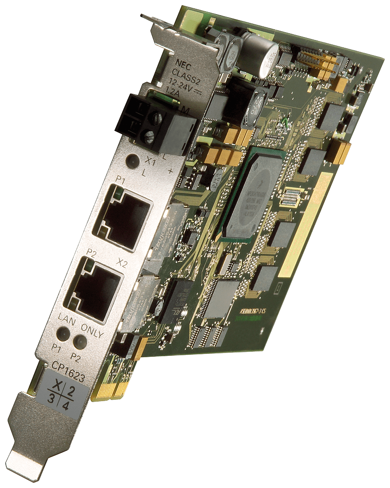 processore di comunicazione CP 1623 PCI express X1 (3, 3V/12V) per il collegamento a Industrial Ethernet (10/100/1000 Mbit/s) con switch a 2 porte (RJ45) tramite HARDNET-IE S7 e S7-REDCONNECT per il supporto del sistema operativo vedere SIMATIC NET Software approvato da SIMATIC NET CD V7.0 HF1. SIMATIC NETPC industrialiCP 1623