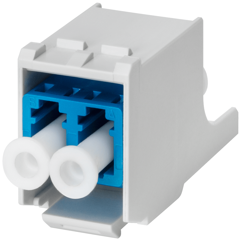coupler FO LC custodia in plastica; per il montaggio nel telaio del modulo da 19 1 confezione = 5 pezzi. giunto FO LC per limpiego nel telaio del modulo da 19 oppure in custodie IE FC RJ45 Keystone