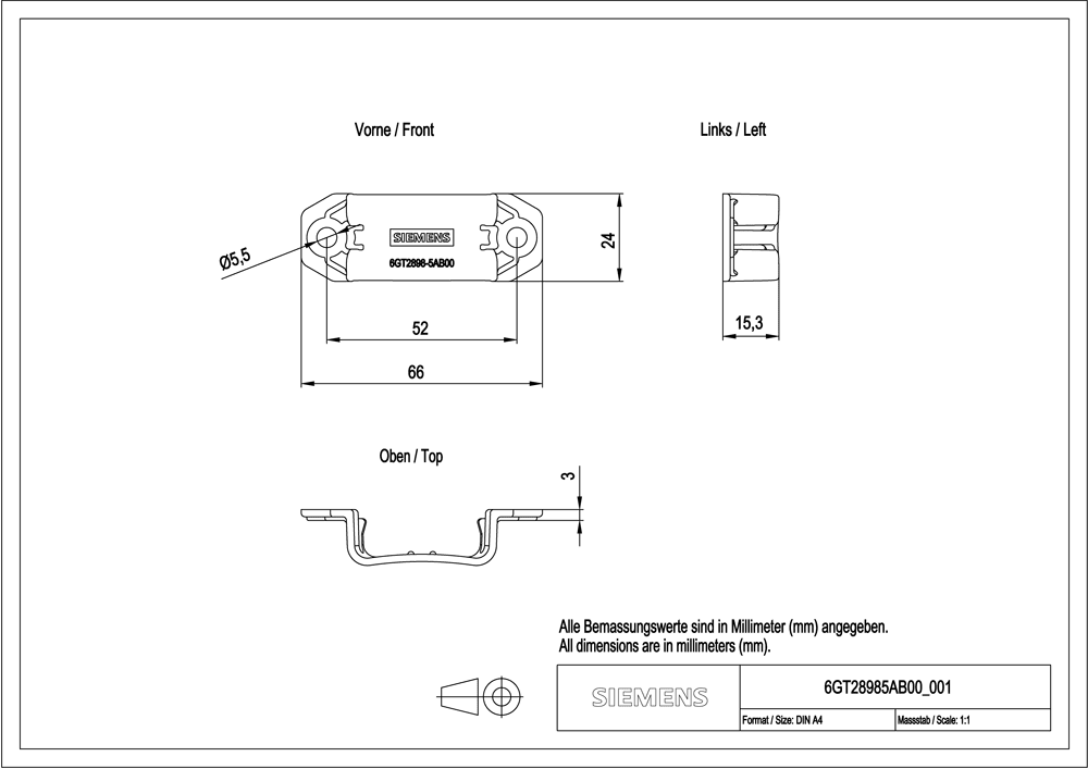 SIMATIC RF600 staffa di fissaggio per RF645T plastica PA 6.6 30GF min. quantità ordinabile 20 pezzi. SIMATIC RFStaffa di ritenzione per RF645T