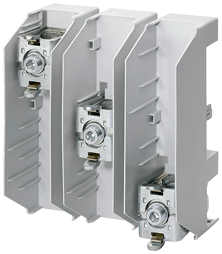 set di morsetti di collegamento, a 3 poli per sbarre piatte fino a 32x 20mm interdistanza tra le sbarre 60mm UL 508A, copertura 8US1922-1GC00 da ordinare separatamente Morsetto di collegamento SENTRON 8US1 per sistemi di sbarre collettrici per il montaggio di dispositivi di protezione. I sistemi di sbarre collettrici 8US Siemens offrono molteplici possibilità per linstallazione di apparecchi di collegamento, manovra e installazione adattabili a sbarre. La struttura modulare, così come il fissaggio meccanico e la contattazione elettrica in una sola operazione sono vantaggiosi. Grazie alla copertura di protezione a prova di dito degli adattatori e dei portapparecchi è garantita unelevata sicurezza di funzionamento. Sono dotati di una omologazione internazionale e consentono possibilità di impiego in tutto il mondo nel settore della costruzione di macchine e impianti. Il sistema di sbarre collettrici 8US1 è disponibile con interassi delle sbarre collettrici diversi. Sistemi di sbarre collettrici SENTRON - sicuri, poco ingombranti, organizzati in modo chiaro.