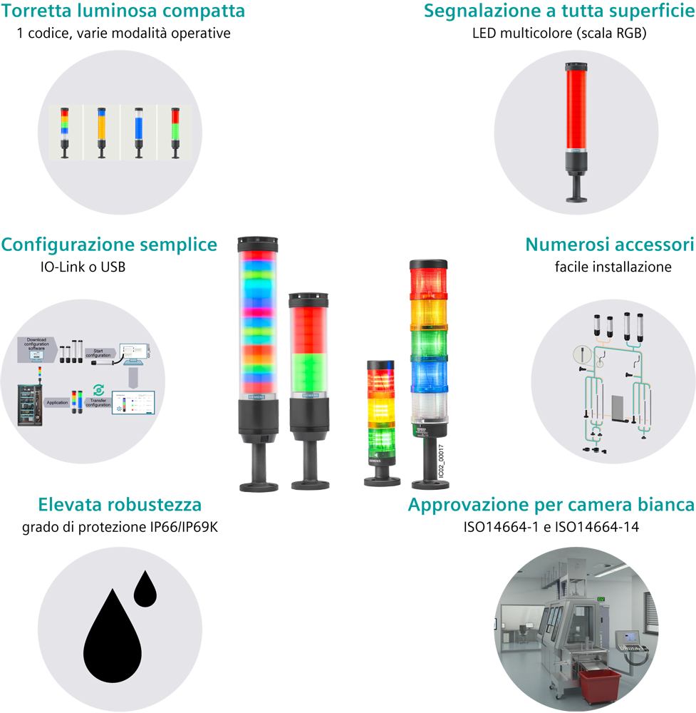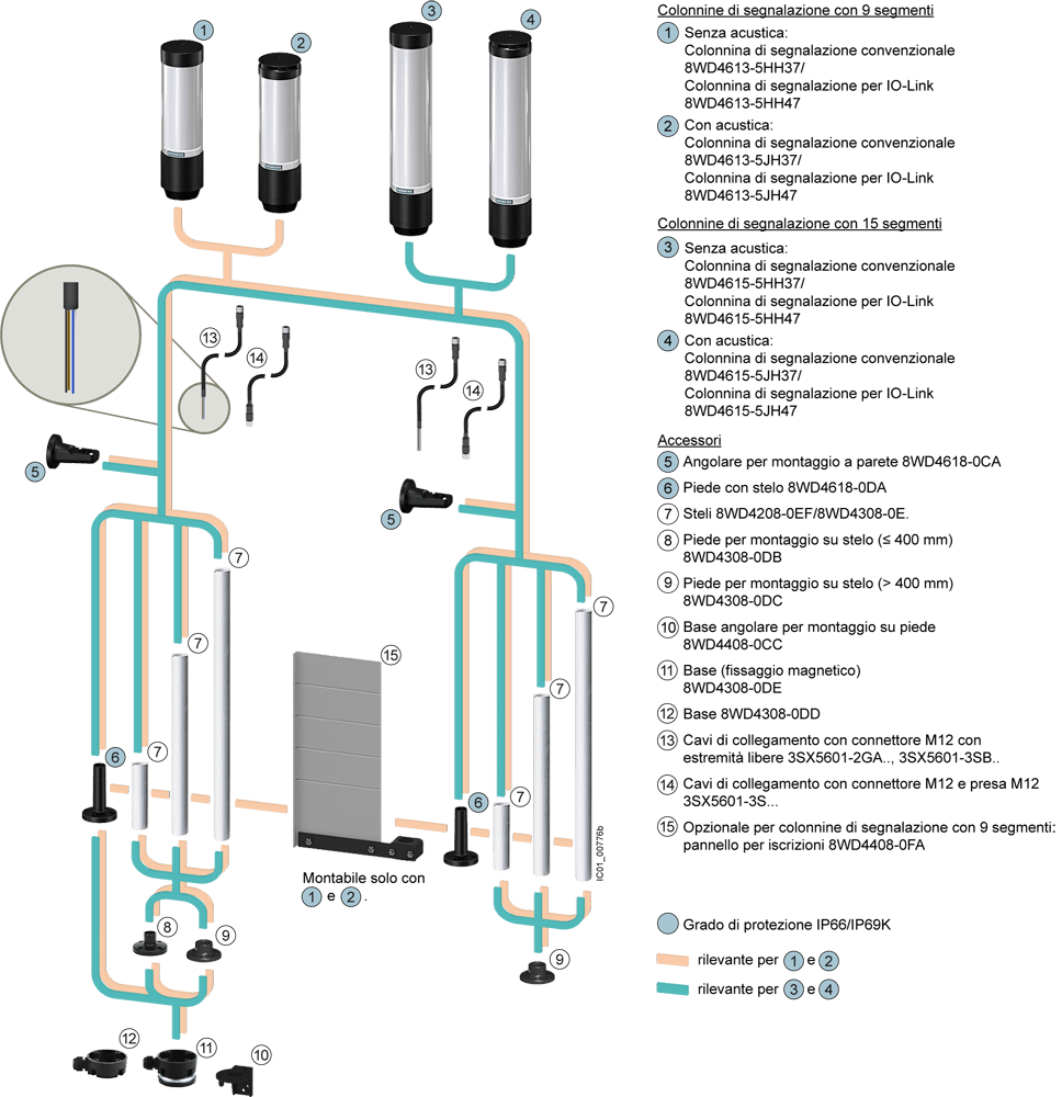 tubo con piede, lunghezza 100 mm, accessori per colonnine di segnalazione configurabili elettronicamente, con diametro 70 mm, IP66/69k Colonnine di segnalazione SIRIUS 8WD - Modulari e con capacità di comunicazione in un design moderno.
