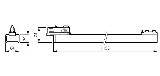 L1200 mm, Alluminio estruso, Argento, Unità di alimentazione (On/Off), 9200 lm, 63 W, 146 lm/W, 4000 K, (0.38, 0.38) SDCM3, Fascio largo, Trasparente, Policarbonato, IP20 | Protetto contro l'accesso con un dito, IK02 | 0,2 J standard, Classe di isolamento I, Binario