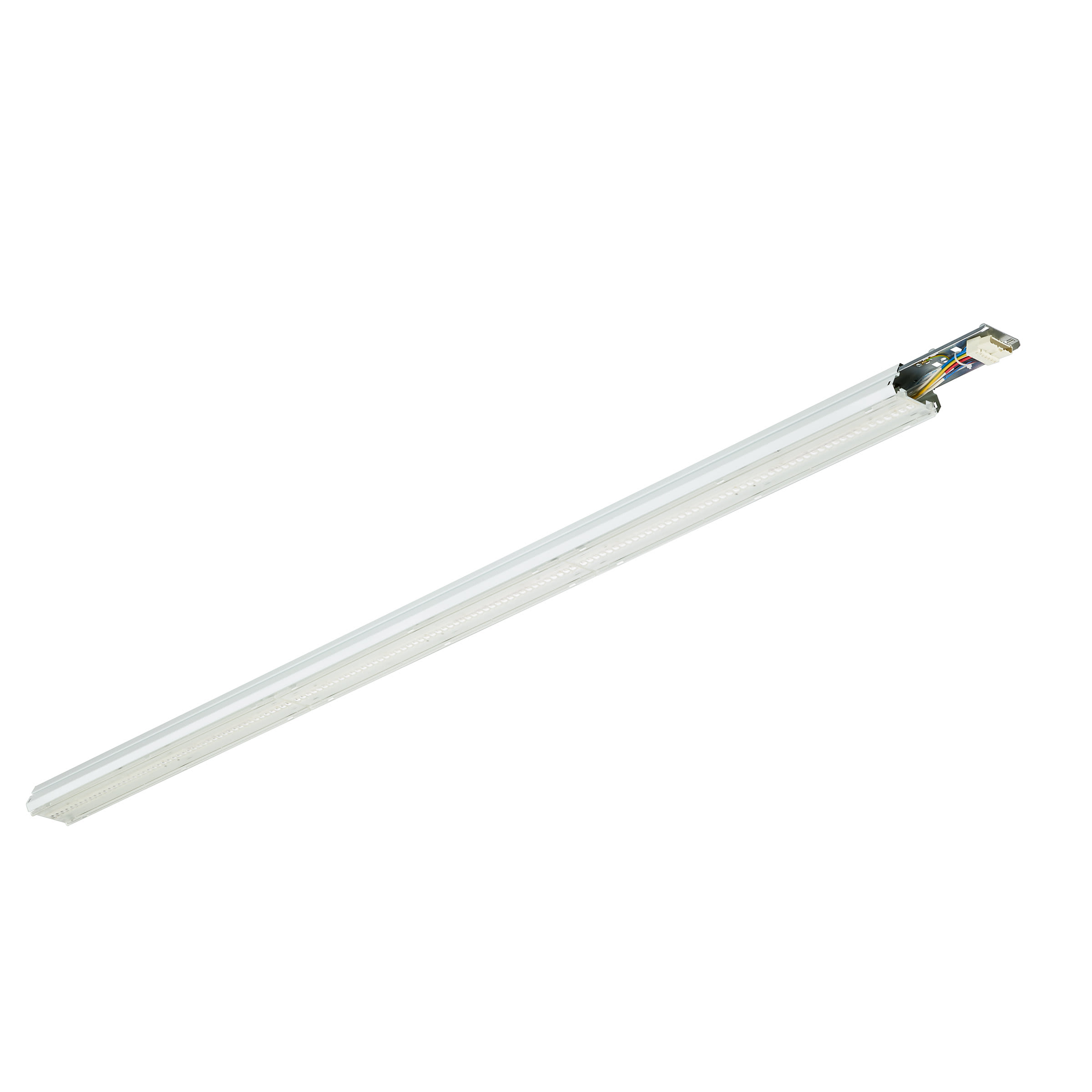 L1700 mm, Acciaio, Bianco, Bianco traffico (RAL9016), Unità di alimentazione (On/Off), 8000 lm, 49 W, 163 lm/W, 4000 K, (0.38, 0.38) SDCM 3, Fascio largo, Smerigliata, Policarbonato, IP20 | Protetto contro l'accesso con un dito, IK02 | 0,2 J standard, Classe di isolamento I, Unità di connessione 5 poli