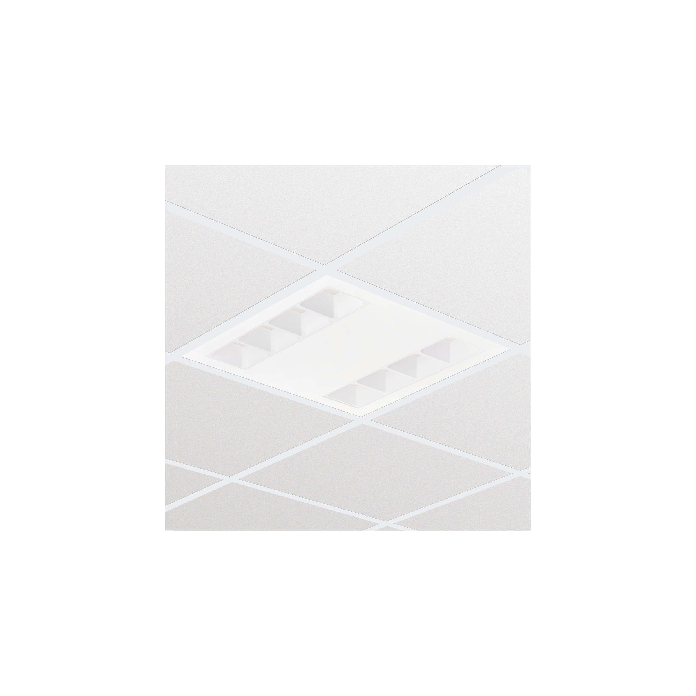 620x620 mm, Visible profile ceiling version, Acciaio, Bianco, Bianco segnale (RAL9003), Incasso, Unità di alimentazione con interfaccia DALI, 3400 lm, 26 W, 129 lm/W, 4000 K, (0.38, 0.38) SDCM ≤3, CRI≥90, UGR19, Fascio largo conforme alle norme per uffici, Riflettore bianco, Opale, Policarbonato, IP20/40| Superficie di emissione protetta contro l'accesso con un dito, IK03 | 0,35 J rinforzato, Classe di isolamento I, Connettore a pressione e fermacavo