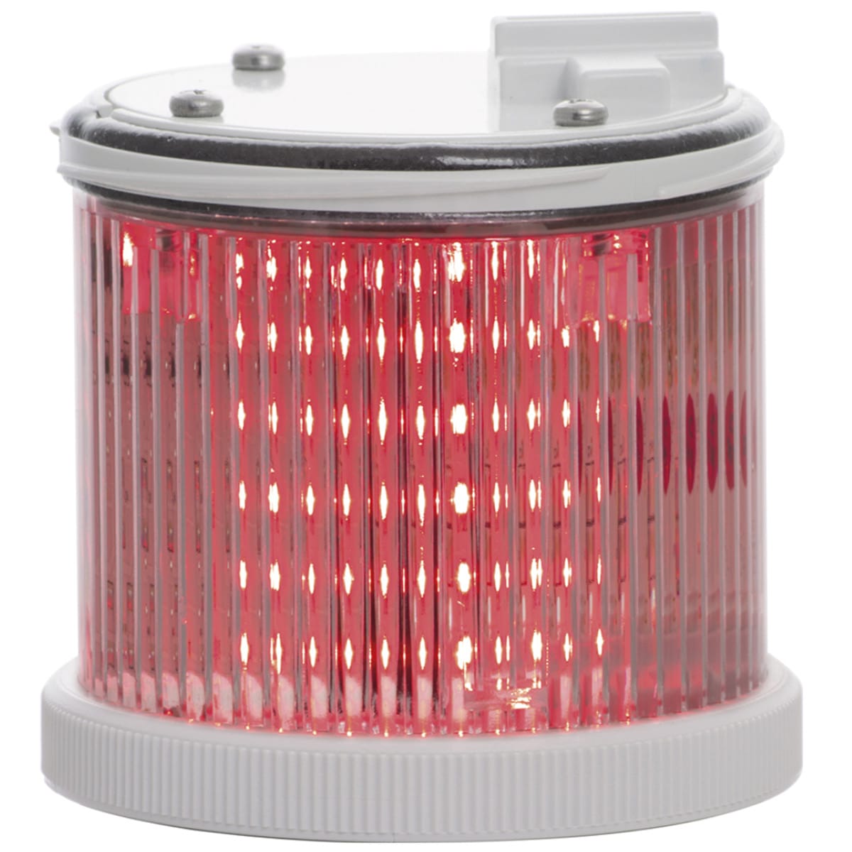 Modulo luminoso 240V AC di colore rosso a LED integrato con lente ALLCLEAR. Possibilit? di gestire diversi effetti luminosi grazie a dip-switch integrato. Ghiera di colore grigio.