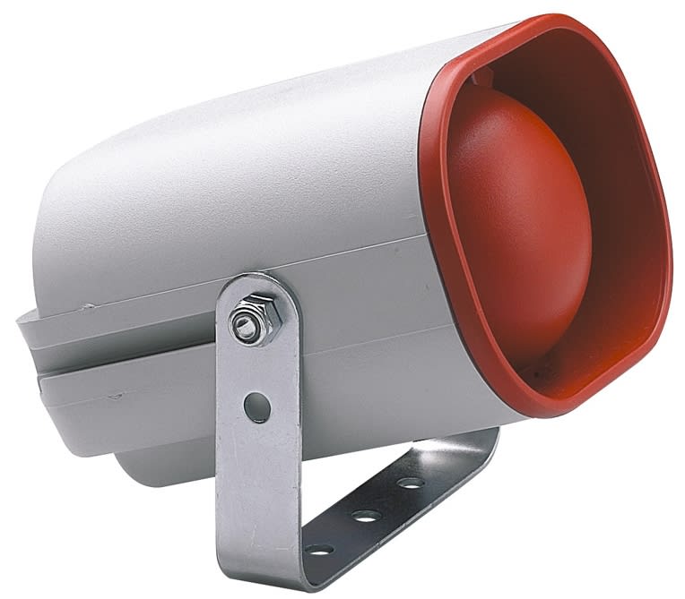 Sirena elettronica con corpo e diffusore sonoro direzionale in ABS, staffa di montaggio in lamiera zincata. Autoestinguente. Multisuono a 32 tonalità (lineare, modulato, bitonale, pluritonale). Unità piezoelettrica.
