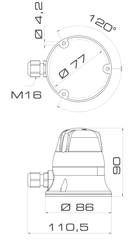 Dispositivo luminoso per applicazioni industriali a bordo macchina, versione a luce fissa. Sorgente luminosa: lampada a incandescenza con attacco Ba15d 5W. Base in PC/ABS, cupola in policarbonato. Fissaggio tramite viteria standard non fornita .