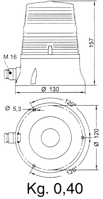 Luce lampeggiante con corpo e base in poliammide autoestinguente. Fornito senza lampada. Possibilità di installazione di lampada a LED