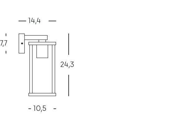 Applique in pressofusione di alluminio. Colore nero goffrato. Diffusore in vetro trasparente. Altezza max lampada: 160mm. Alimentazione 230V. Classe di protezione: IP54 Potenza massima lampade: 60W