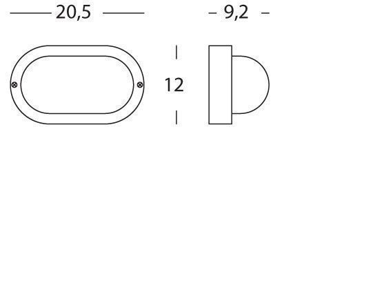 Plafoniera ovale con struttura in termoplastica. Diffusore in vetro stampato. Versione con gabbia e struttura in termoplastica. Altezza massima lampada: 114mm. Alimentazione 230 V. Classe di protezione: IP44 Potenza massima lampade: 40W