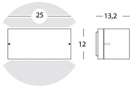 Applique in pressofusione di alluminio. Diffusore in termoplastico opalino. Altezza massima lampada: 145mm. Alimentazione 230 V ~ 50 Hz. Classe di protezione: IP54 Potenza massima lampade: 60W