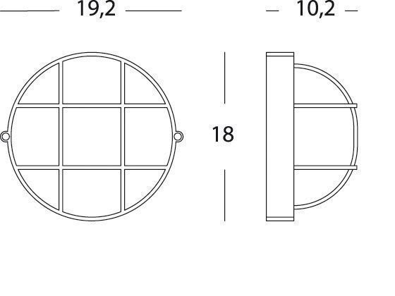 Plafoniera in pressofusione di alluminio. Diffusore in vetro stampato. Altezza massima lampada: 105mm. Alimentazione 230 V ~ 50 Hz. Classe di protezione: IP54 Potenza massima lampade: 60W