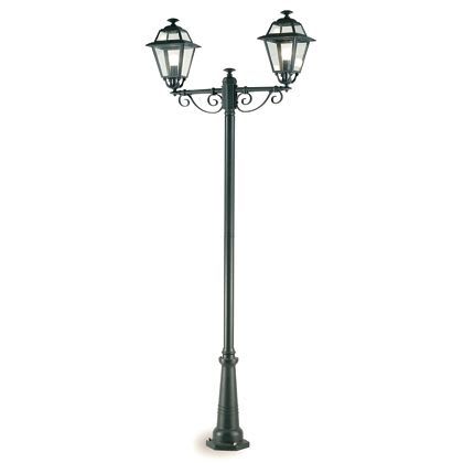 Struttura in pressofusione di alluminio. Diffusori in vetro trasparente. Dispositivo di connessione e accessori per il fissaggio. Portalampada in porcellana con attacco E27. Altezza lampada: max 210mm. Lampada esclusa. Alimentazione 230V ~ 50Hz. Classe di protezione: IP43 Numero lampade: 2 Potenza massima lampade: 100W