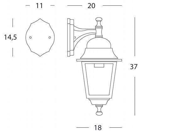 Applique in pressofusione di alluminio. Diffusori in vetro trasparente. Altezza max lampada: 170mm. Alimentazione 230 V ~ 50 Hz. Classe di protezione: IP43 Potenza massima lampade: 60W