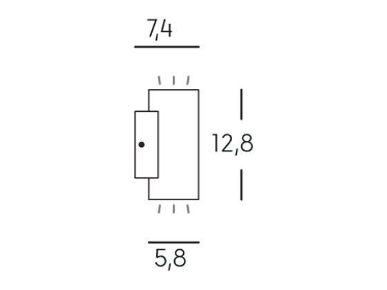 Punto luce in alluminio pressofuso. Diffusore in vetro trasparente. Consumo: 3W+3W. Flusso luminoso nominale: 580 lumen. Flusso luminoso reale: 500 Lumen. Classe di efficienza energetica: F Illuminazione con 1+1 LED COB Ø11mm. Temperatura di colore: 4000°K. Luce naturale. Alimentazione: 230V. Classe di protezione: IP65 Numero lampade: 2 Potenza massima lampade: 3W
