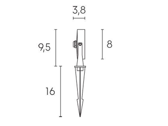 Faretto orientabile in alluminio pressofuso. Con picchetto di supporto incluso. Diffusore in vetro trasparente. Consumo: 9W. Flusso luminoso nominale: 700 lumen. Flusso luminoso reale:600 lumen. Classe di efficienza energetica: G Temperatura di colore: 4000°K. Luce naturale. Illuminazione con 12 LED SMD 2835. Cavo di alimentazione H05RN-F. Pressacavo PG7. Alimentazione: 230V. Classe di protezione: IP65 Potenza massima lampade: 9W