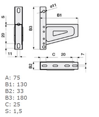 Geeignet für Kabeltragsystembreite - 75...75 mm