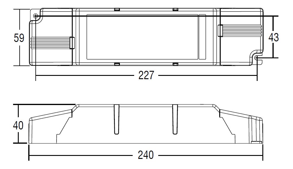 Alimentatore multipotenza fornito di dip-switch per la selezione della corrente in uscita. Alimentatore indipendente IP20 (SIRIO 150). Protetto in classe II contro le scosse elettriche per contatti diretti e indiretti (SIRIO 150). Alimentatore da incorporare (SIRIO 150 BI). Utilizzabile per apparecchi di illuminazione in classe di protezione I e II (SIRIO 150 BI). PFC attivo. Uscita ausiliare 12 V max. 100 mA. Entrata analogica per sensore termico. Corrente regolata ±5 % incluse variazioni di temperatura. Morsetti di entrata e uscita contrapposti (sezione cavo fino a 1,5 - 2,5 mm2 / AWG15 - AWG13). Serracavo su primario e secondario per cavi di diametro: min. 3 mm - max. 8 mm (SIRIO 150). Protezioni: termica e cortocircuito; contro le extra-tensioni di rete; contro i sovraccarichi. Protezione termica = C.5.a. I drivers sono disponibili con tropicalizzazione su richiesta (aggiungendo CC al codice articolo).