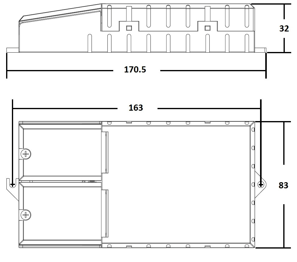 Alimentatori elettronici per lampade a scarica, uso indipendente con coprimorsetto sdoppiato. Alimentatore elettronico per uso indipendente, classe I. Utilizzabile per apparecchi di illuminazione in classe di protezione I e II. Grado di protezione: IP20. Efficienza energetica: A2. Capacità di carico ammessa: 20 - 120 pF. Lunghezza massima dei cavi per la connessione della lampada: 1 m. Frequenza d’esercizio: 173 Hz. Entrata ed uscita sullo stesso lato con morsetti rapidi a molle fermafili con apertura a leva 0,75 - 2,5 mm2. Fissaggio dell’alimentatore tramite asole per viti M4. Schermato contro i radiodisturbi. Incremento del 50% sulla vita della lampada. Risparmio energetico fino al 25% rispetto all’utilizzo di alimentatori convenzionali. Il cablaggio dell’alimentatore elettronico deve avvenire con cavo silicone doppio isolamento adatto ad impulsi da 5 kV. Protezione contro le extra tensioni di rete. Protezione in caso di disconnessione della lampada. Protezione in caso di lampada guasta. Protezione in caso di lampada a fine vita.
