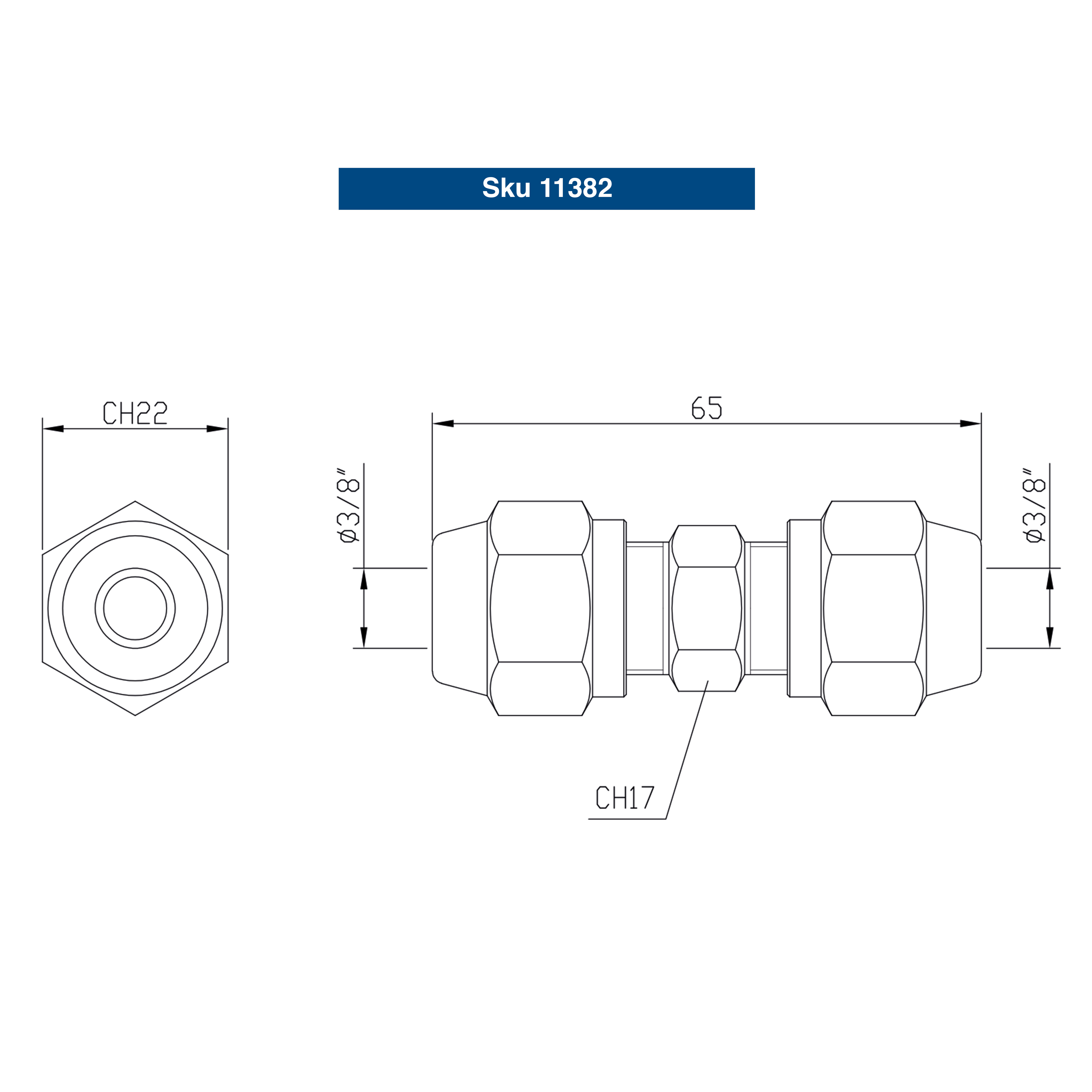 RACCORDO LINEARE 1/4-1/4 AUTOFLANGIANTE + 2 DADI
