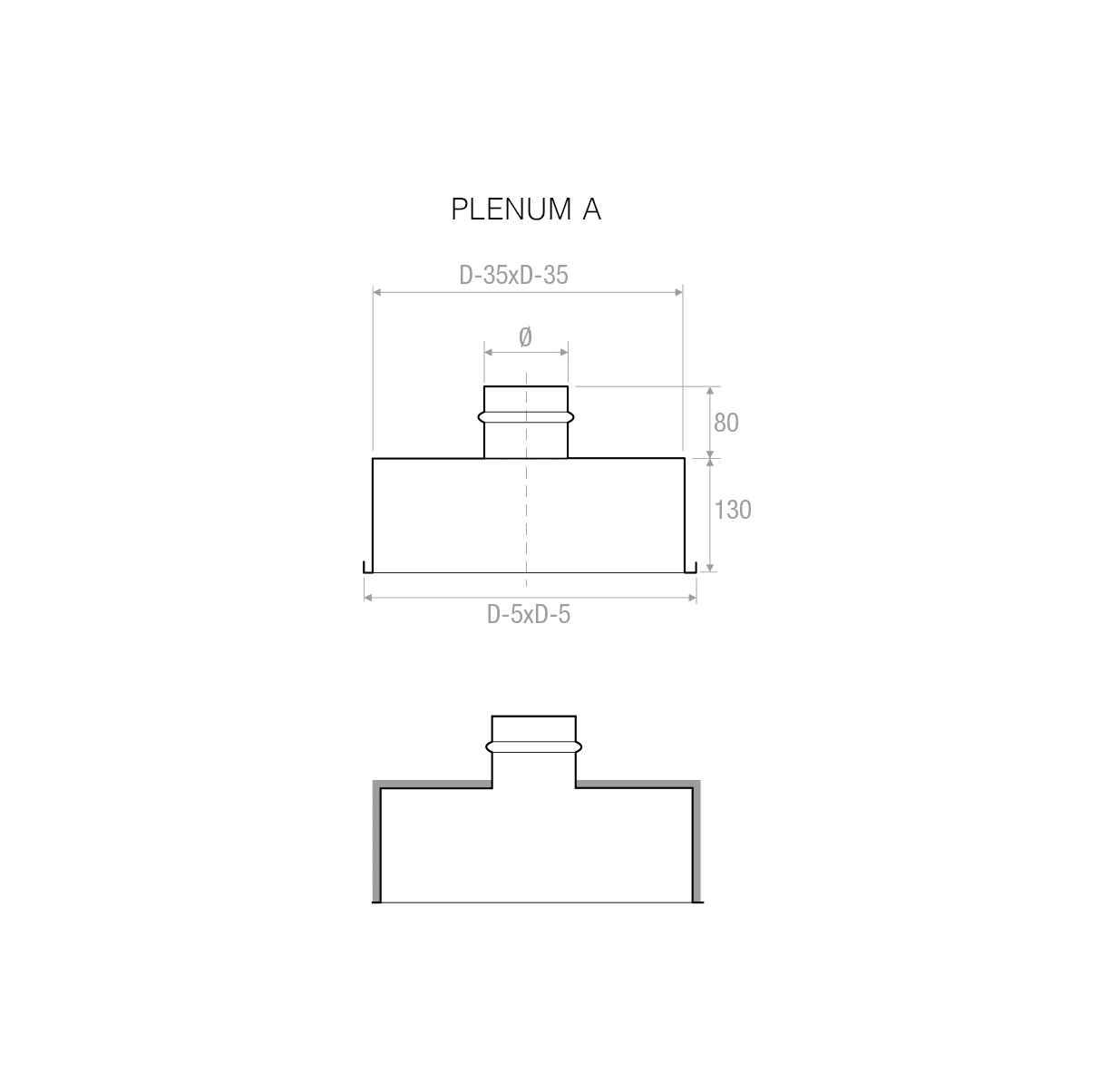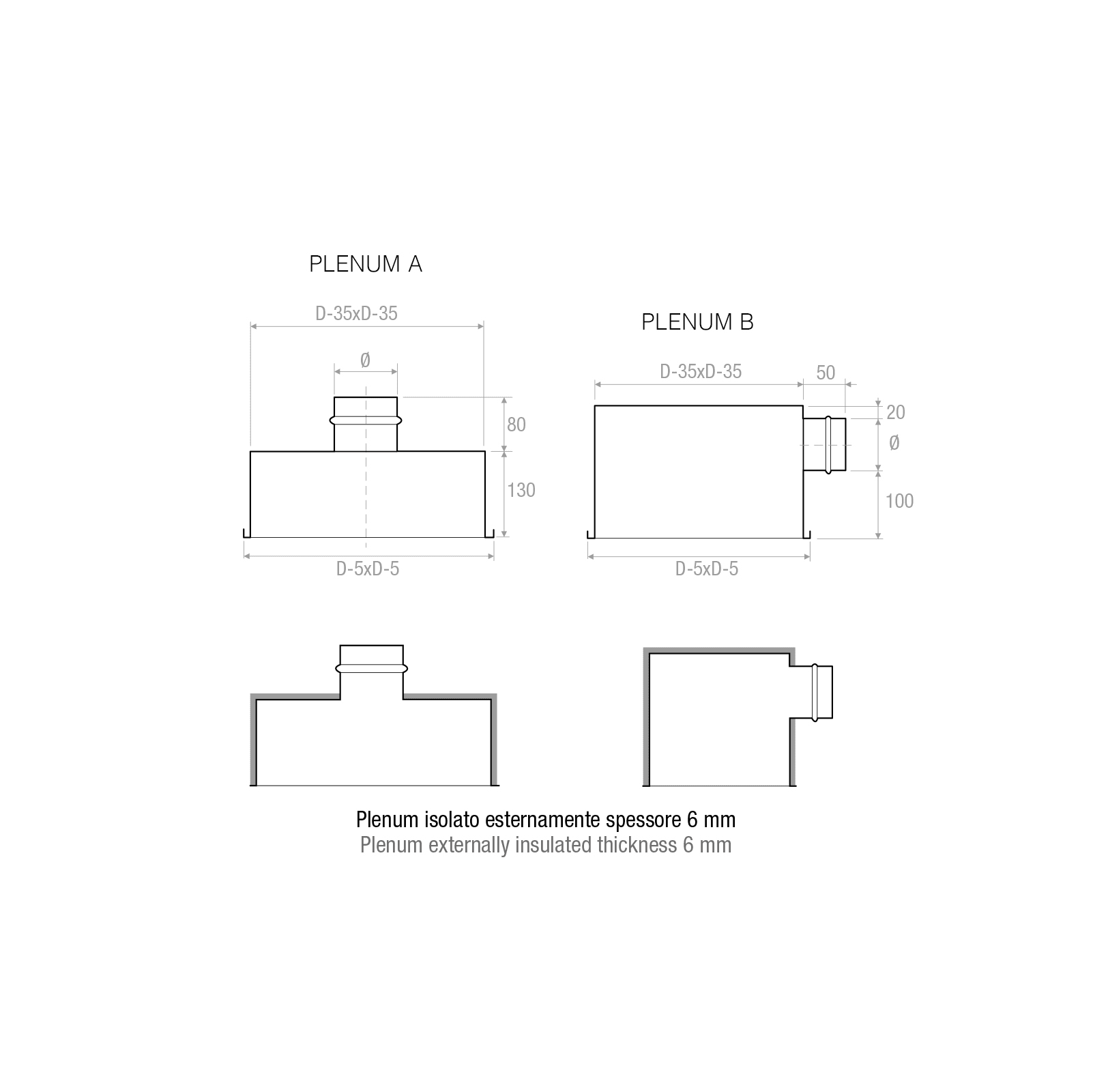 PLENUM ISOLATO PQZI-2 PER DIFFUSORE A GETTO ELICOIDALE REG. A SOFFITTO 300-D.123