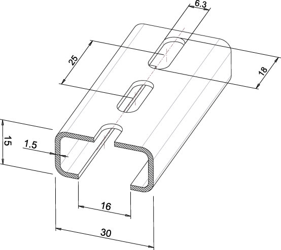 TEKNOMEGA SRL - TKGDIN1050 GUIDA DIN A C PASSIVATA FORATA 30X15 2 - DIN1050