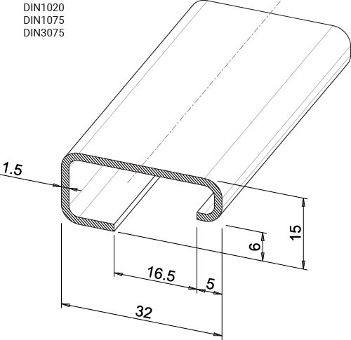 TEKNOMEGA SRL - TKGDIN3075 GUIDA DIN A G SENDZIMIR NON FORATA 32X15 - DIN3075