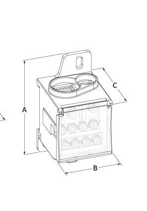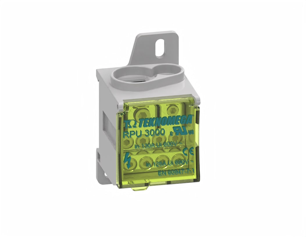 Morsettiera di distribuzione, marca TEKNOMEGA SRL, modello TKGRPU3000 - RIPARTITORE COMPATTO UNIPOL. 125A 8OUT