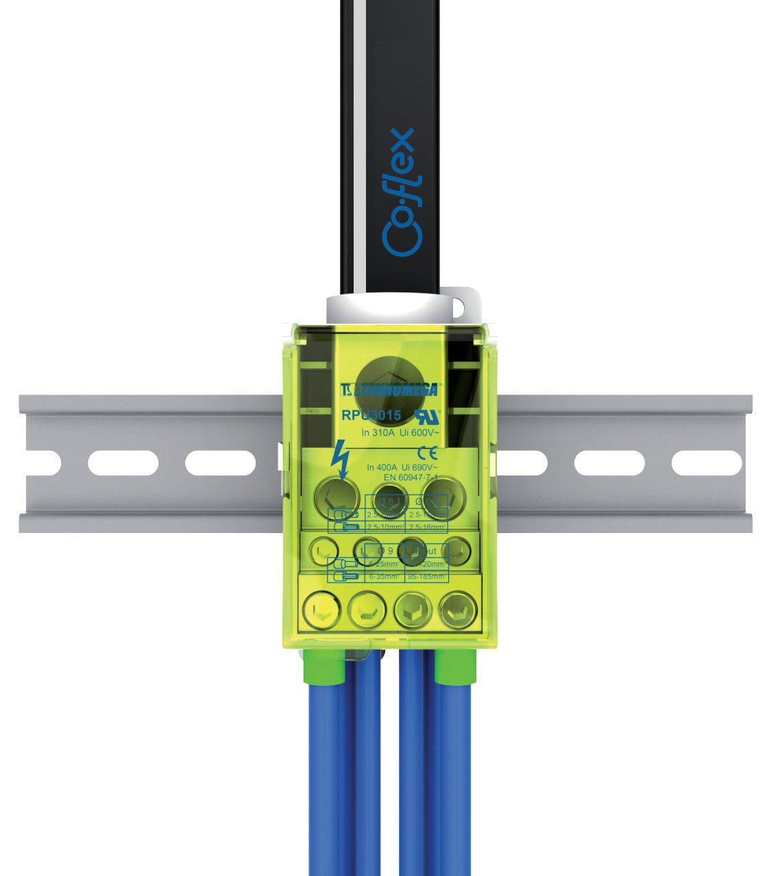 Morsettiera di distribuzione, marca TEKNOMEGA SRL, modello TKGRPU3015 - RIPARTITORE COMPATTO UNIPOL. 400A 11OUT