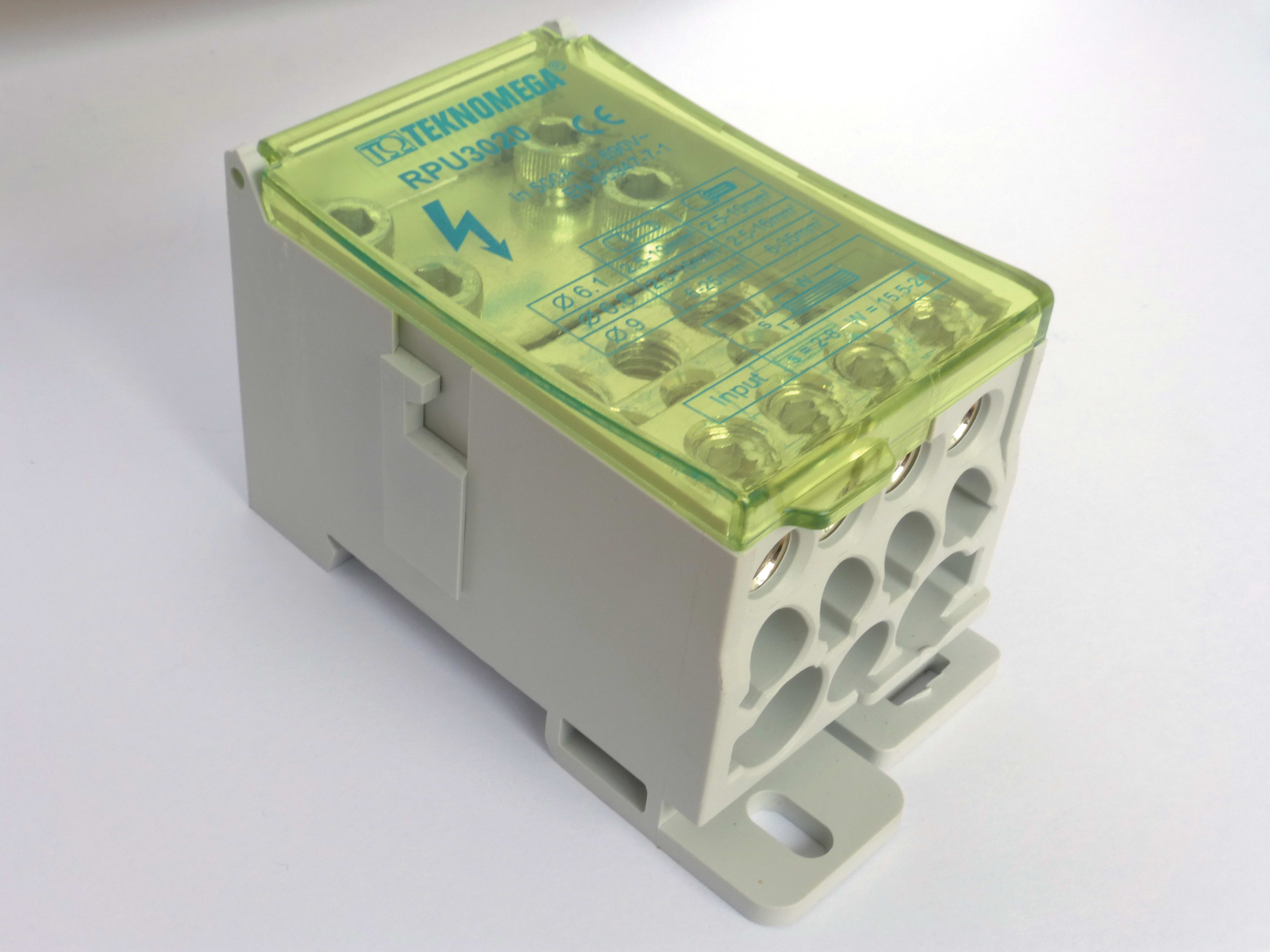 Morsettiera di distribuzione, marca TEKNOMEGA SRL, modello TKGRPU3020 - RIPARTITORE COMPATTO UNIPOL. 500A 11OUT